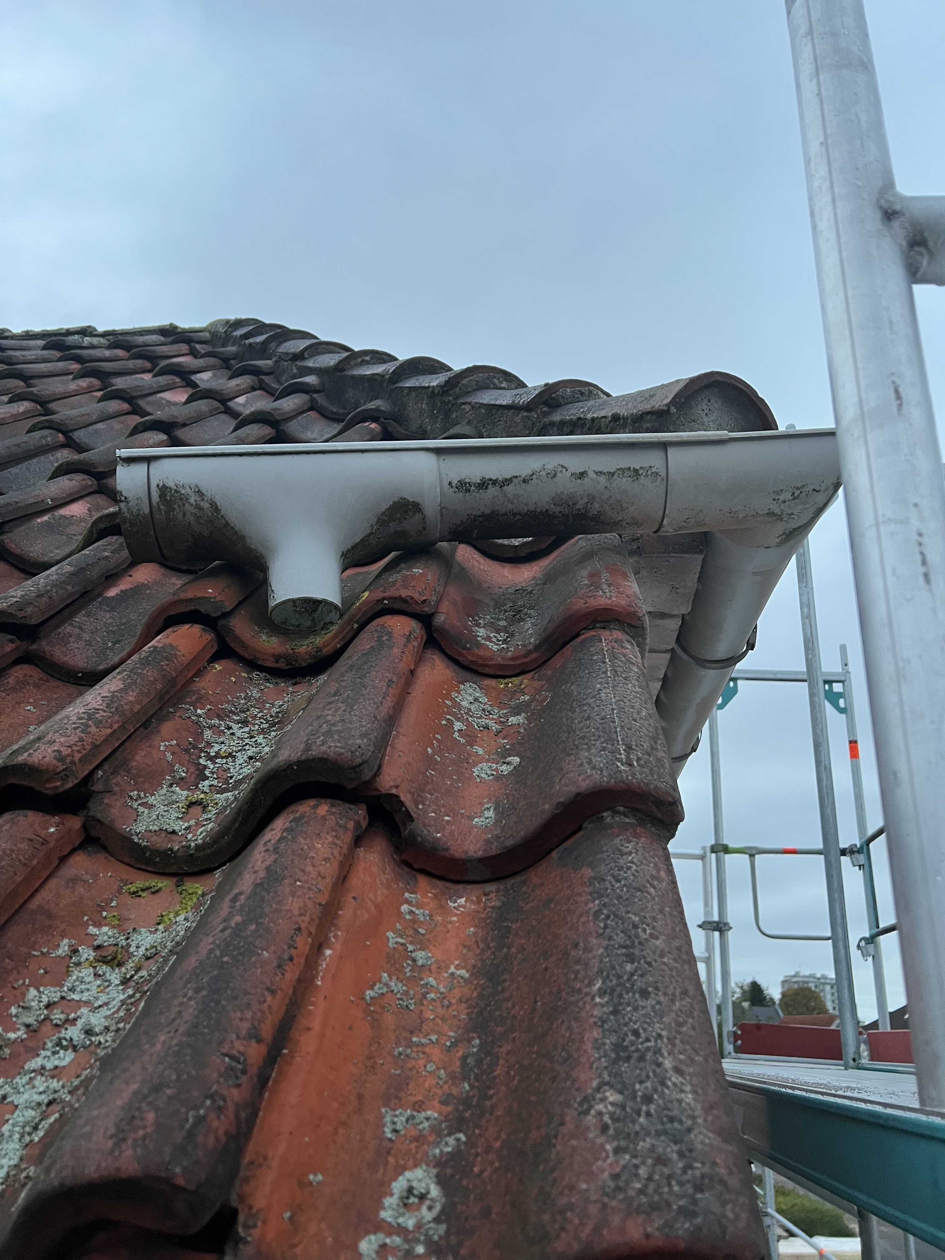 Her ses før / efter billeder af udskiftningen af tagrenderne på en muremester villa